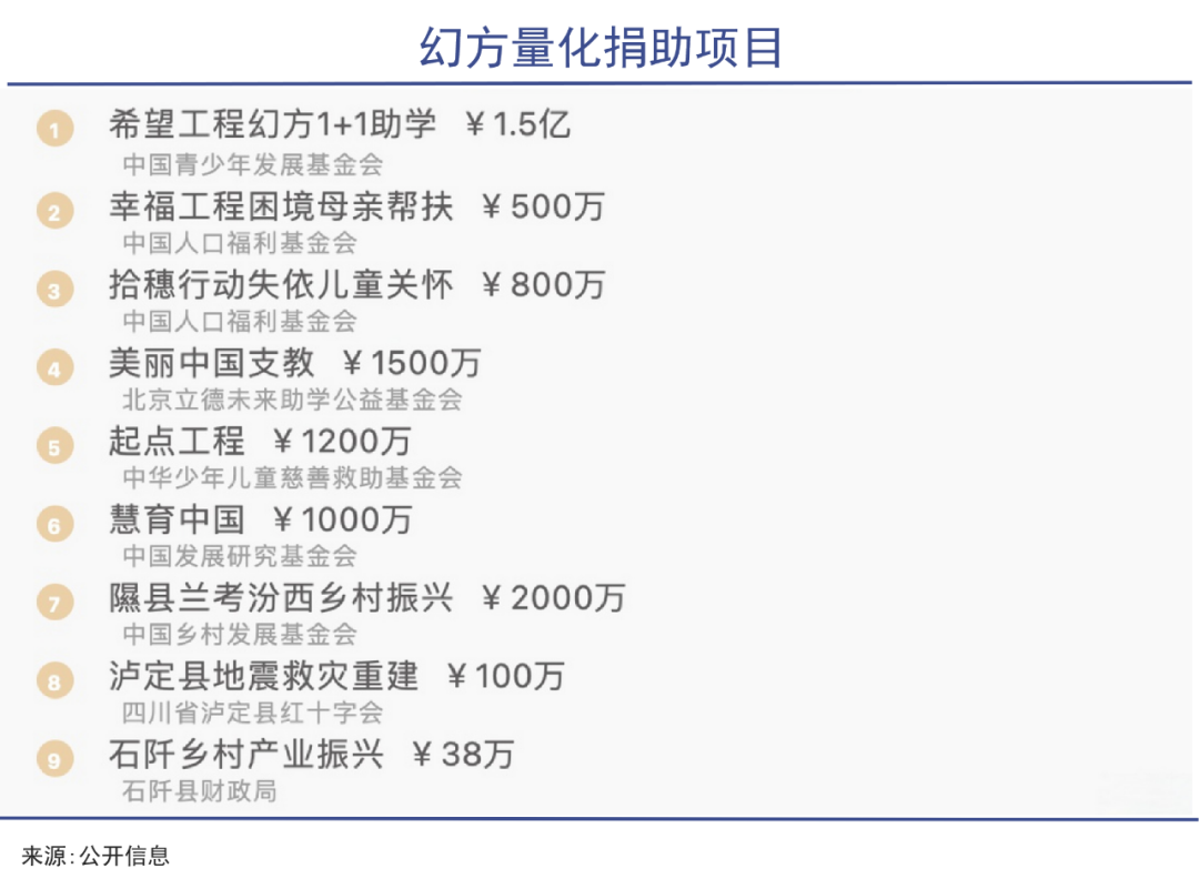 比起因为买豪宅上热搜的明汯投资,幻方量化员工炫富的方式是给母校捐款1.38亿,公司在2022年的慈善捐赠总计也超过了3.5亿,至少看着还有一点回馈社会的意识。