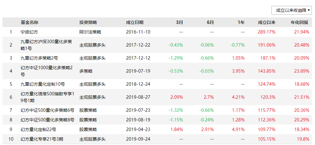 幻方旗下部分产品的业绩表现
