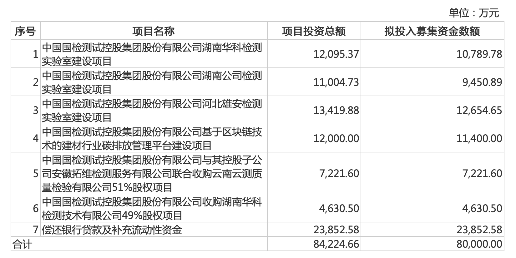 本次募资除补流外,其他资金均将投入检测相关领域。募投项目包括湖南华科检测实验室建设项目、湖南公司检测实验室建设项目、河北雄安检测实验室建设项目、基于区块链技术的建材行业碳排放管理平台建设项目、联合收购云南云测质量检验有限公司51%股权项目、收购湖南华科检测技术有限公司49%股权项目、偿还银行贷款及补充流动性资金。![]()