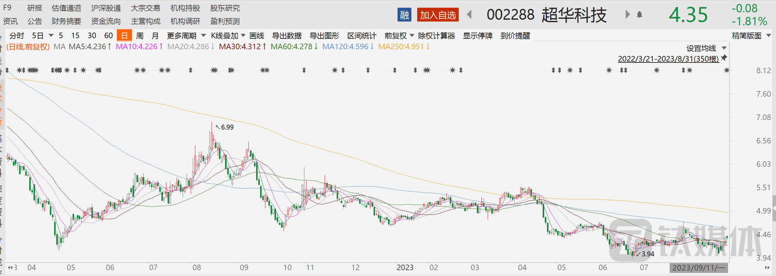 或受监管问询函影响,二级市场方面,今日股票走势以震荡调整为主,截至9月19日收盘,公司股价报收4.35元,下跌1.81%,总市值40.5亿元。
