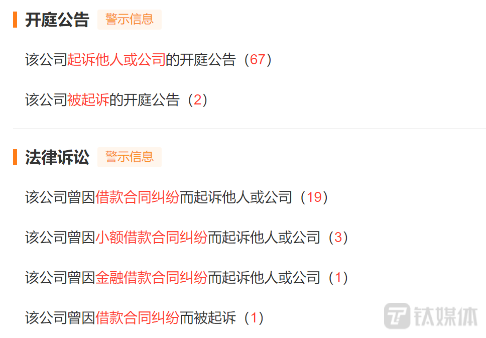 此外,据天眼查显示,公司开庭公告高达69条,涉及的法律诉讼24条。