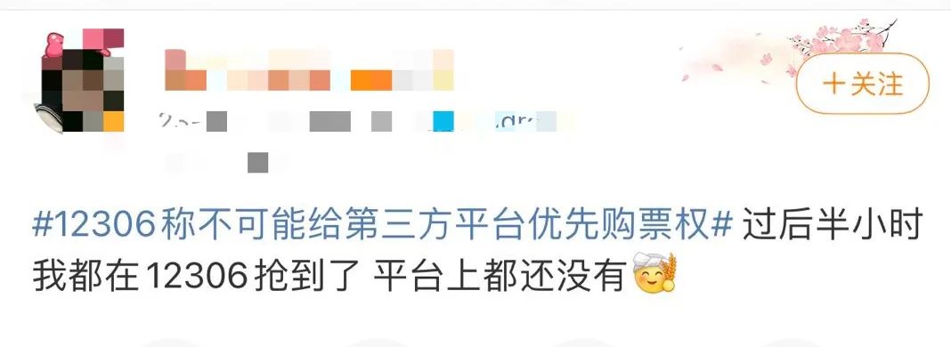 还有网友称,同时在12306和第三方平台抢票,12306抢到了,但平台上却没有抢到。