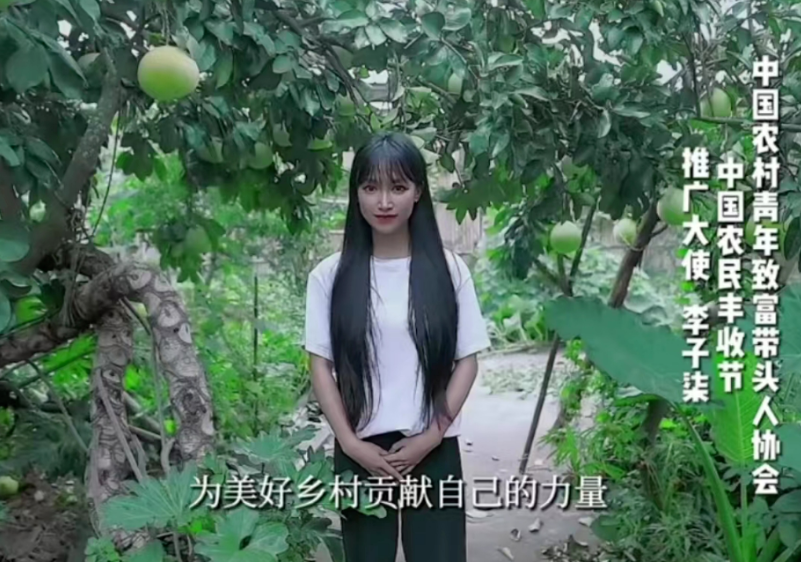然后,9月15日,李子柒在一个视频中露面了:33岁的她站在一段乡村道路上,身穿白T恤和黑裤,长发过腰,身后有几棵挂果的柚子树。视频是为中国农民丰收节所拍,她是活动的推广大使。