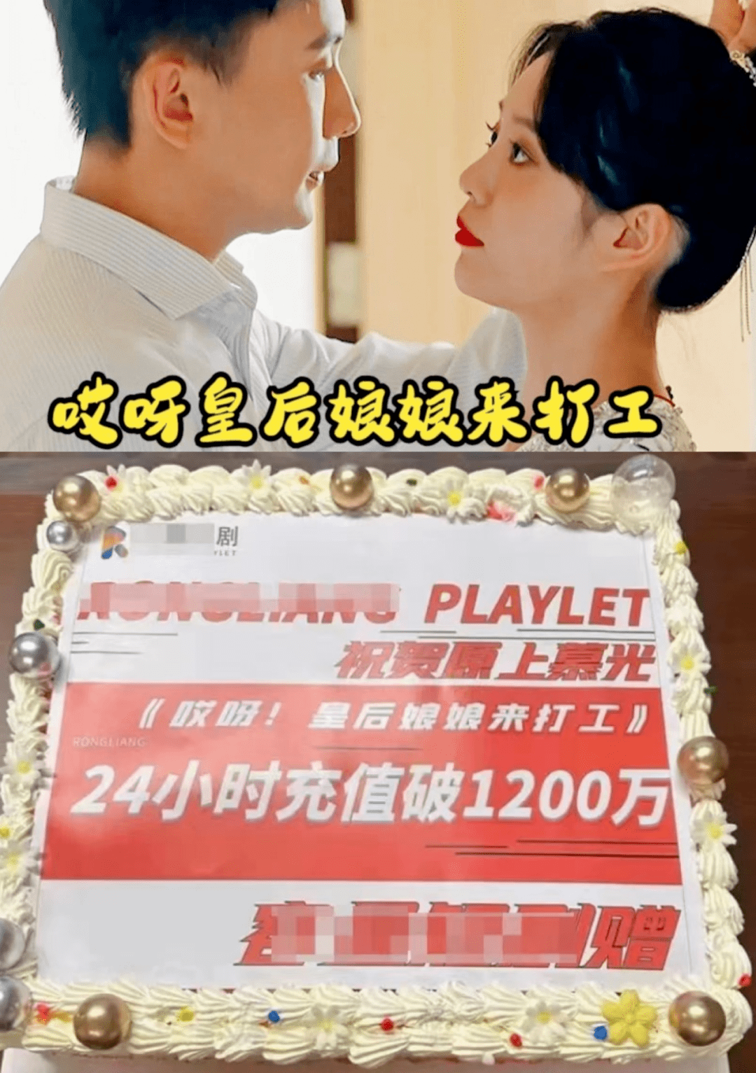 这就是爆款小程序短剧《哎呀!皇后娘娘来打工》的开场剧情,该剧最近被行业广为热议的点在于,据该剧出品方晒出的庆功蛋糕显示,“《哎呀!皇后娘娘来打工》24小时用户充值金额破了1200万”。