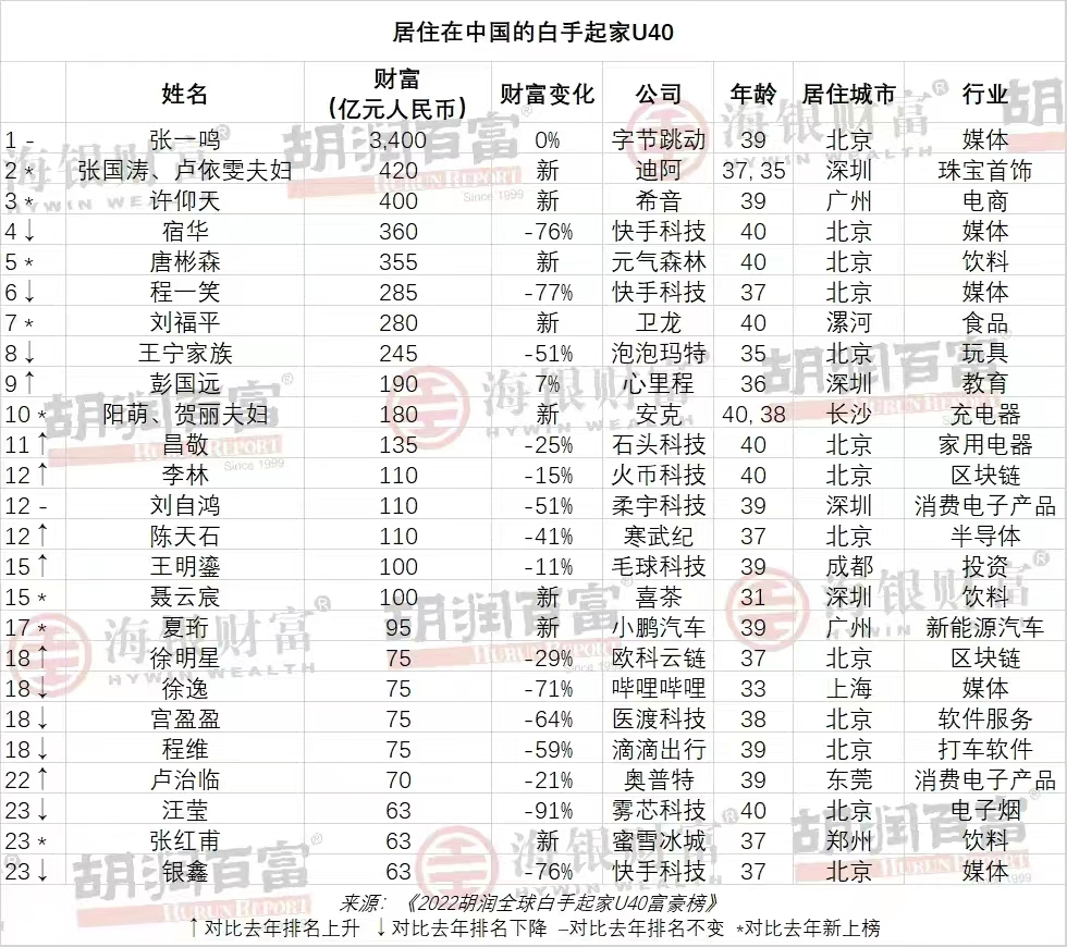 据《2022胡润全球白手起家U40富豪榜》,张国涛、卢依雯夫妇曾以420亿身家位列中国白手起家富豪榜第二位,仅次于张一鸣。