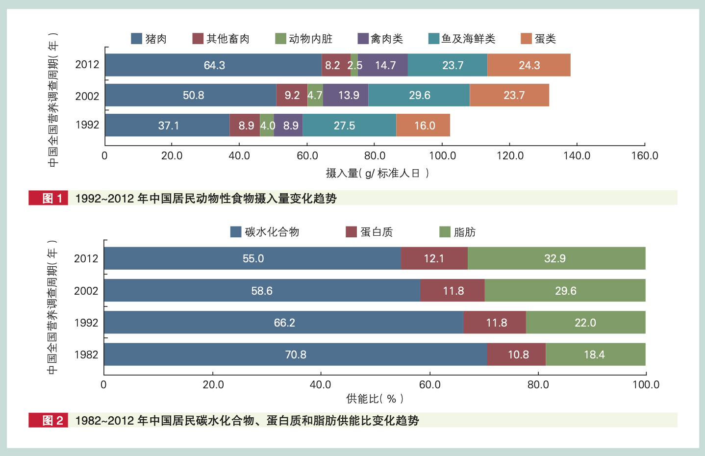 1992年到2012年,中国人吃动物来源、高脂、高能量食物越来越多 / [24]