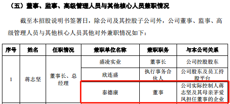 钛媒体APP注意到,蒋志坚目前仍然担任泰德康的董事,其母亲茅爱凤也担任董事职务。与此同时,2020年,盛凌电子向泰德康产生的销售收入为1273.69万元,而泰德康也位列公司的第三大客户,但自2020年之后,泰德康再未出现在公司的前五大客户名单中。![]()