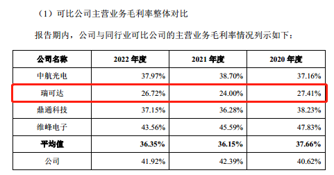 对此,深交所要求盛凌电子结合产品具体应用领域、功能及达到的技术标准等,对比瑞可达等可比公司逐项说明产品可比性,结合可比业务分析毛利率高于同行业公司的合理性;说明2021年毛利率上升趋势与同行业公司不一致的原因。