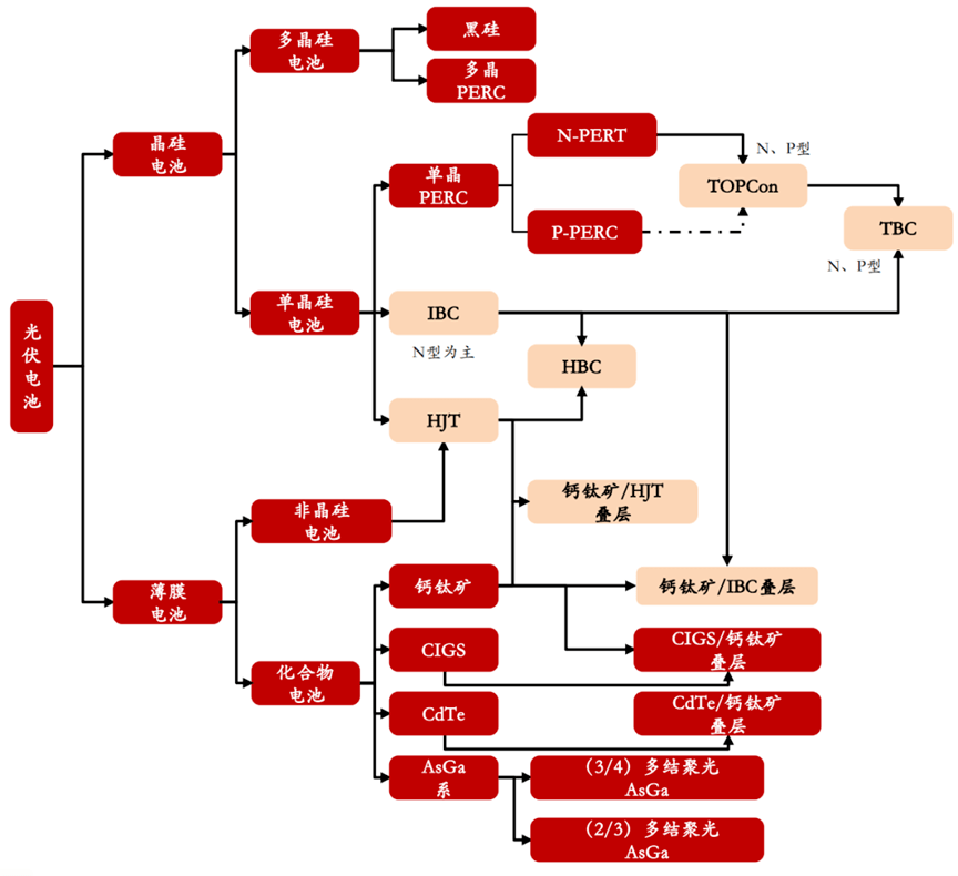 光学损失和电学损失是影响光伏电池效率的两大核心因素。围绕减少这两大损失的增效方向, N型衍生出TOPCon、HJT、BC等不同技术路线。