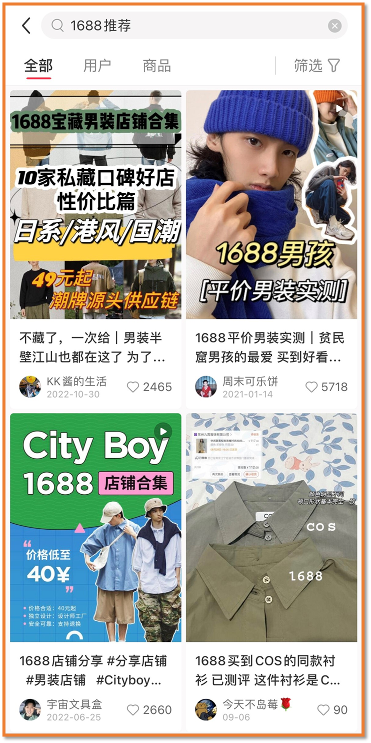在小红书上被好物种草、然后去1688购物,最近在年轻人中颇为风靡。在消费分级的趋势下,富裕阶层还是会买贵的,不过对于社会新鲜人或者钱包缩水的“不稳定中产”而言,既想买到品牌货的品质,又想只花几分之一的价格,是这群人上1688的消费心理。