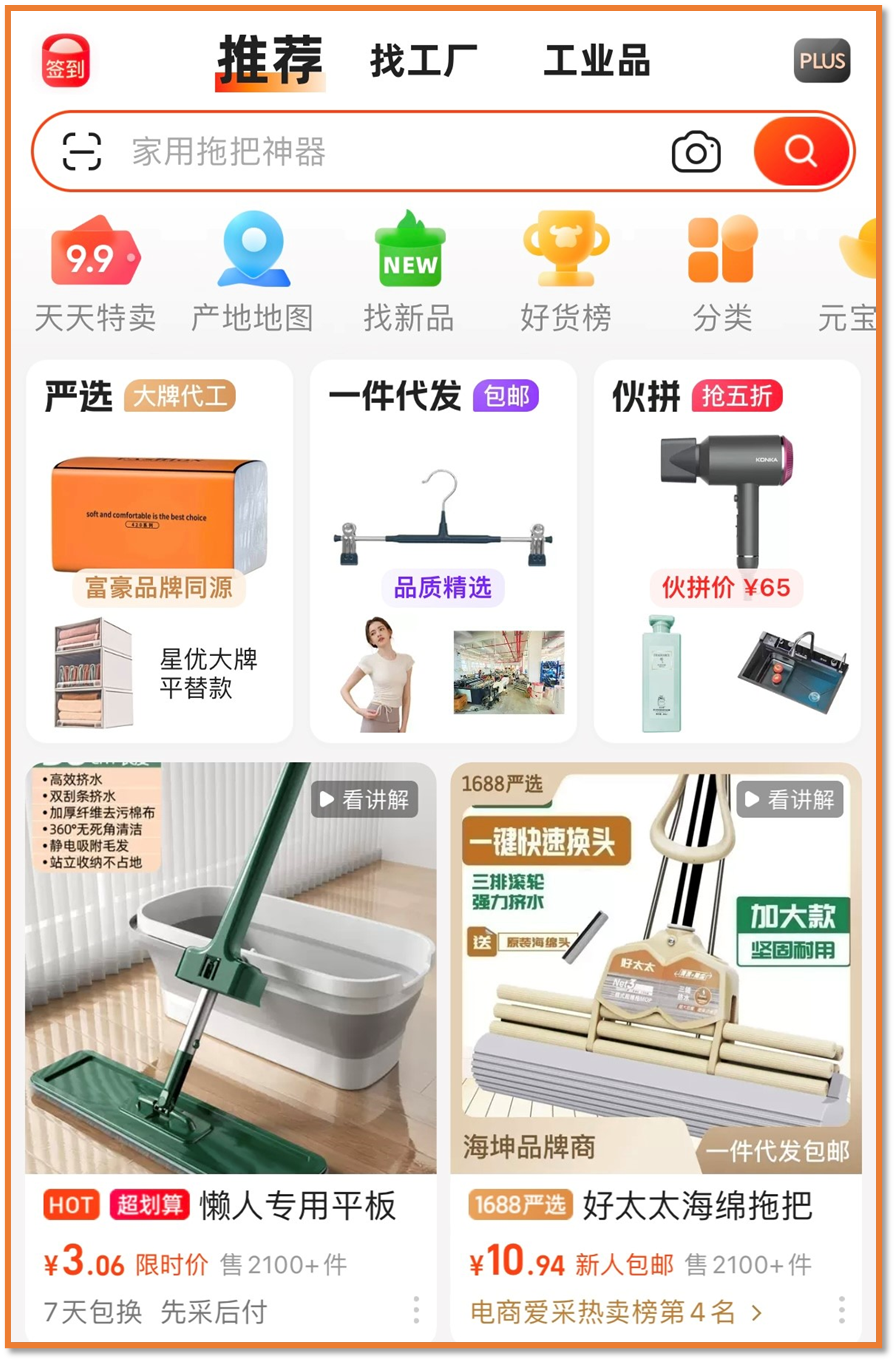 与这两个相比,1688则拥有天猫与淘宝不具备的下沉基因,看上去顺理成章。