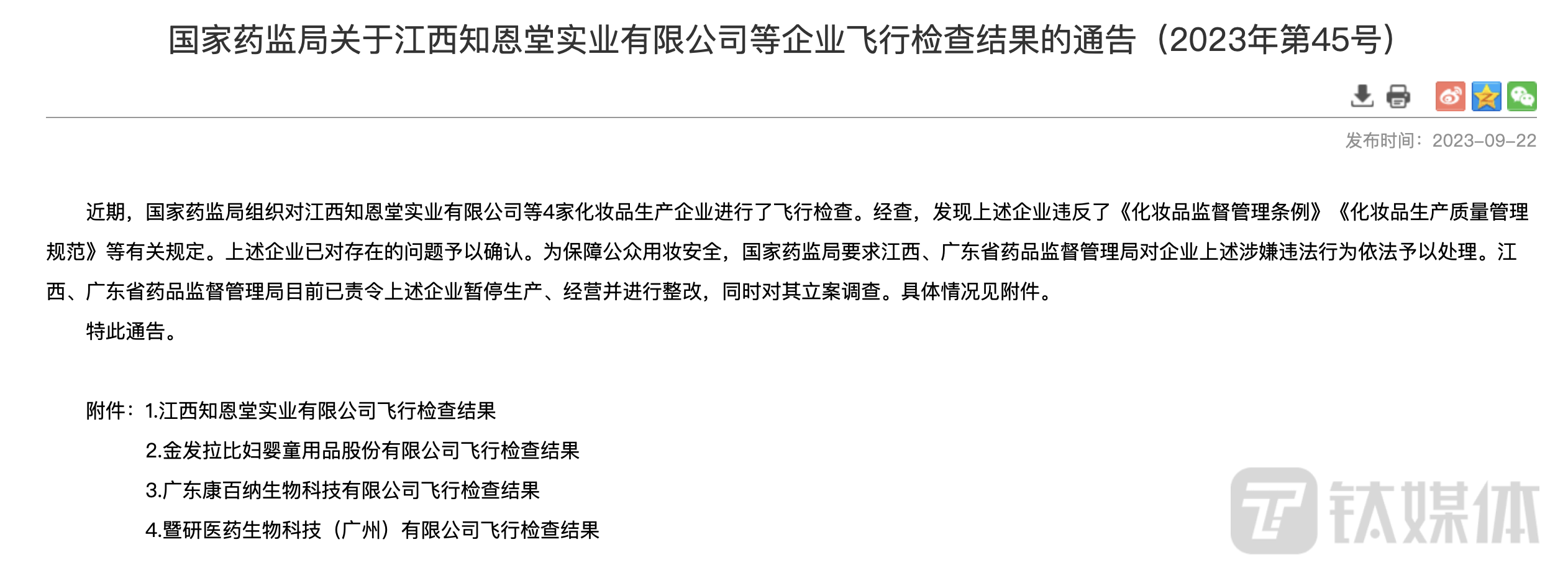 金发拉比对此作出回应,称公司于8月17日收到广东省药监局《责令改正通知书》,公司高度重视,立即组织内部整理整顿,按要求认真进行整改,并于9月18日将整改报告报送广东省药监局和国家药监局。