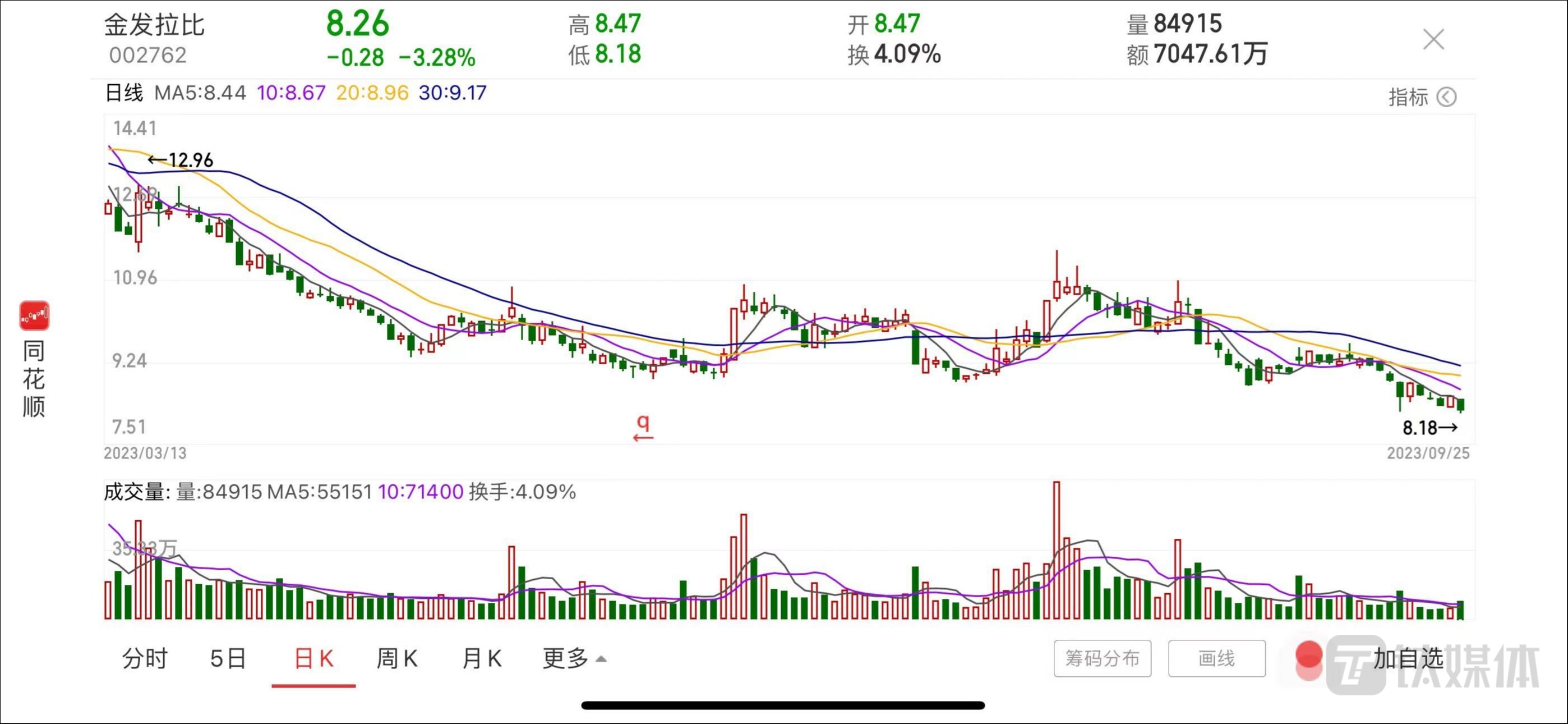 二级市场方面,金发拉比股价自8月以来整体处于下滑状态。受上述消息影响,截至9月25日收盘,公司股价报收8.26元,跌幅为3.28%,当前公司总市值约29.24亿元。