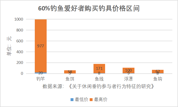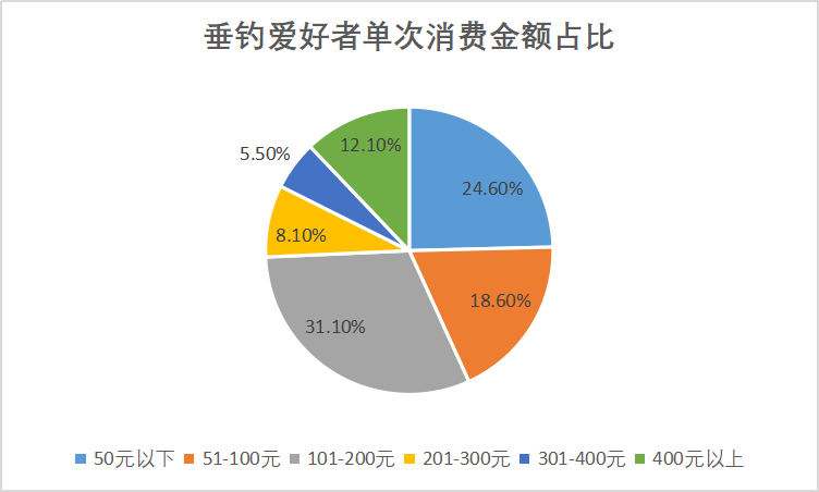 为参与到活动中,爱好者必须准备完整一套钓鱼用具,竿、钩、线、饵、网、灯……一样也不能少。配置一套顺手的工具少则数百元,多则数千上万元。参考《关于休闲垂钓参与者行为特征的研究》,参与垂钓单次消费101-200元的群体占比为31.1%,所有群体中占比最高。算下来,平均每月野钓2-3次,一年的消费约为5000元。