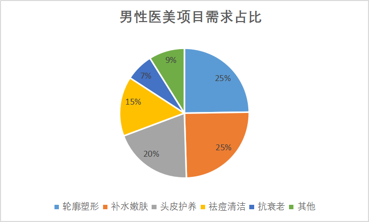 “男色消费”的特点,首先,追求美的内容日渐丰富。过去运动和医疗服务已满足消费群主流的需求,然而现在增添了美妆、医美、美颜服务等复杂项目,其中美妆涵盖面部清洁保养、眼部护理、补水保湿、去皱瘦脸等项目;医美涵盖面部提升、光子嫩肤、果酸剥离、隆鼻、眼袋等项目;美颜服务涵盖纹身、头皮护理、眉形设计与祛痘修面等项目。