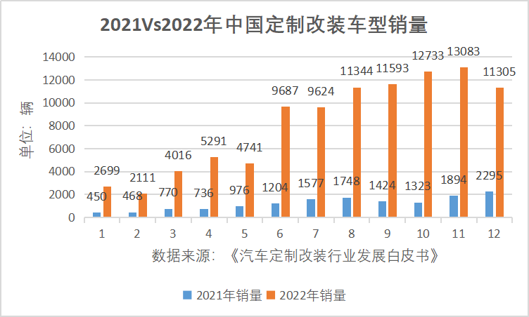 2022年起汽车定制改装车型销量快速上升,当年销售9.8万辆。虽然在汽车整体销量中,如此占比几乎微不足道,但同比562%的增长,已经让市场见识到改装