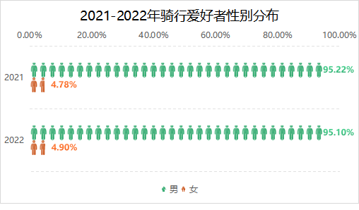 受到新冠疫情影响,为了避免被传染,2020-2022年普通人改变了习惯:原本以公交、地铁为主的出行方式,逐步被自行车取代——先是共享单车,后是用户自购,在2022年初达到顶峰,其中男性占比高达95.1%。