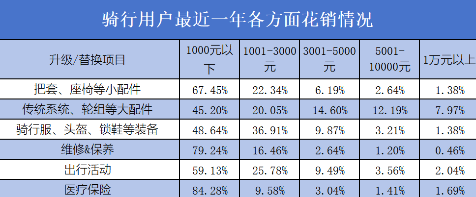 然而严格意义上,购车只是完成骑行运动的第一步,真正的消费刚刚开始。完整的骑行装备,还包括升级坐垫、轮组、服饰(骑行服、头盔、锁鞋等),高端消费还要考虑维修保养的成本。如果参加专业赛事,还需要支付参赛费与医疗保险费用,整体算下来已经接近一辆高端A00级新能源车水平。
