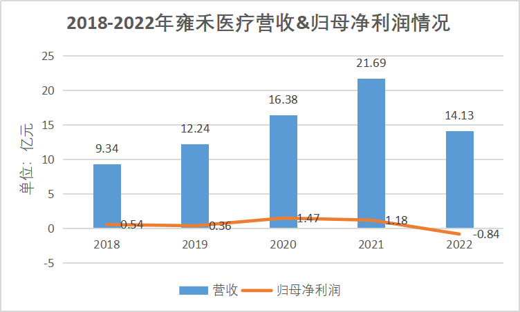 对比之下,传统消费相形见绌。仅以防脱发公司雍禾医疗业绩为例,在2021年触及峰值后,营业额与归母净利润开始下滑。