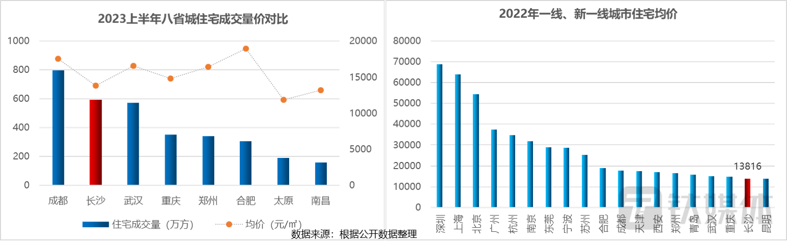 因此,长期以来,长沙处于房价洼地,2022年在新一线城市中住宅均价倒数第二低。