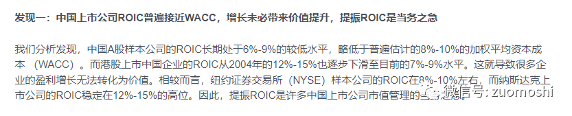 关于ROIC上看下麦肯锡公开的一个结论: