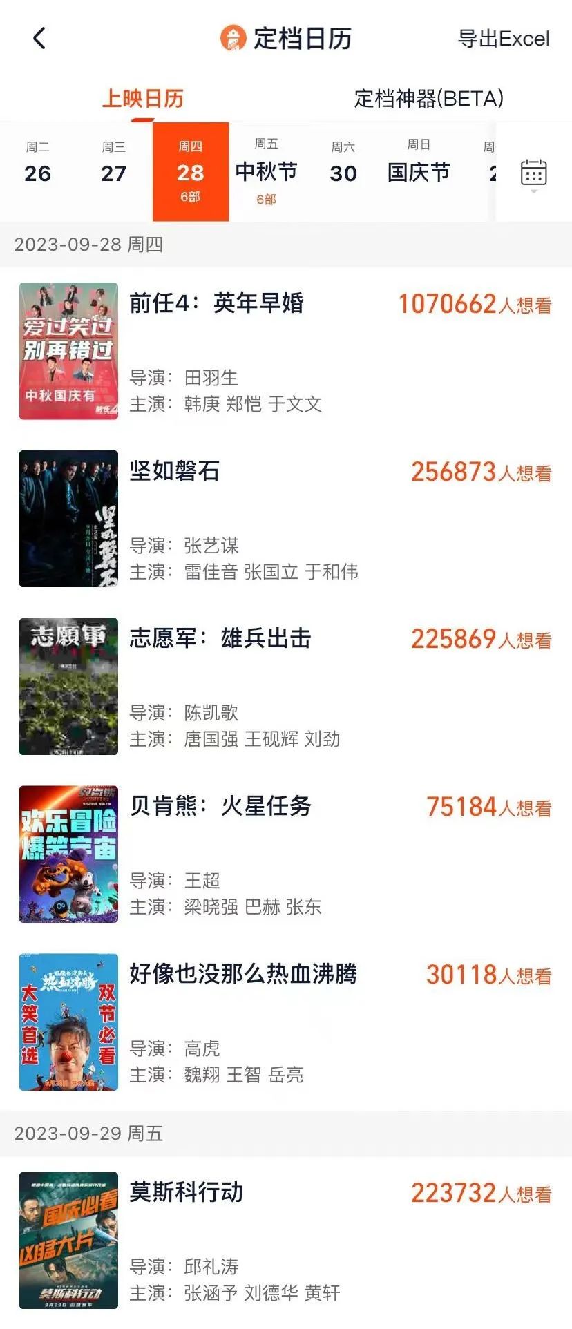 那么2023年国庆作为近年来题材最多元的一届,内容与市场都有哪些看点?谁最有可能成为最后赢家?