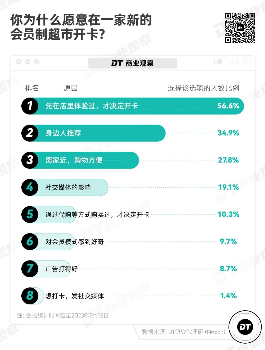 反过来看,超6成非会员可以接受“付费逛超市”这件事,超过一半的人接受会员卡的价格,只是出于距离远、商品缺乏吸引力、大份量不友好等原因没有开卡。