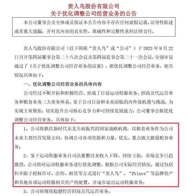 这家做了36年鞋服生意的企业,最终还是选择和老本行挥手作别,未来的贵人鸟,会把主要的精力都放在粮食贸易上。