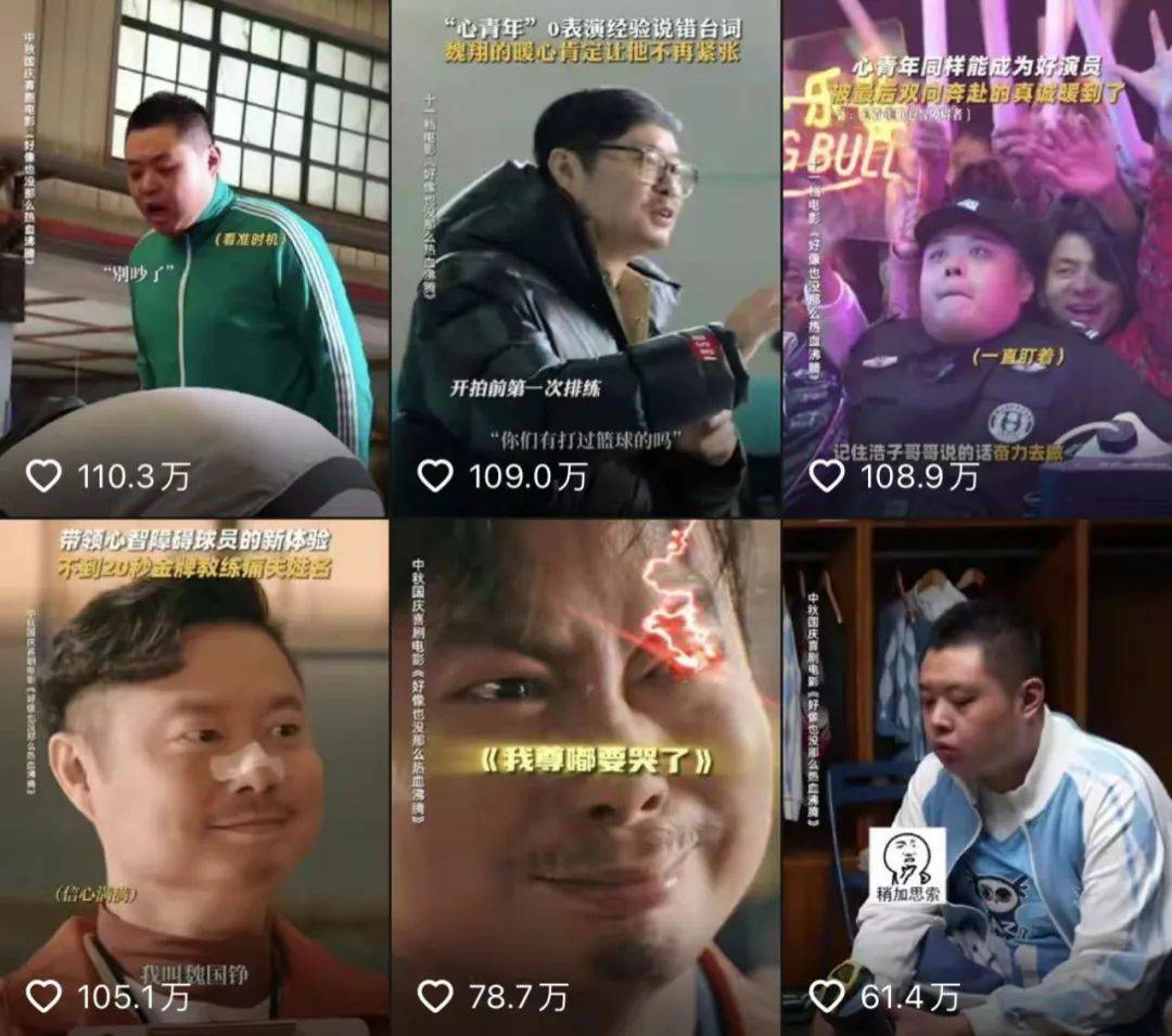 《好像也没那么热血沸腾》的短视频营销风格更近似于暑期档的《八角笼中》,将素人演员作为宣传重点来制造话题。无可非议的是,这些与当下社会紧密共鸣的内容的确是上好热度抓手。这部影片为数不多的高热度物料,几乎都由心青年演员贡献。