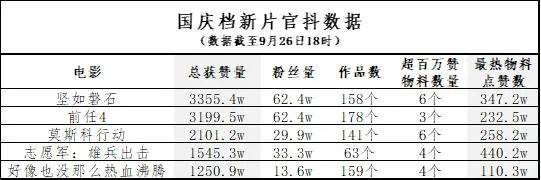 随着影片讨论度的上升,截至目前,《坚如磐石》已经一跃成为国庆档新片中抖音热度最高的一部,百万级爆款物料数量多达6个。