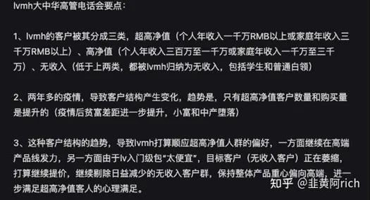 按照截图披露的说法,LV将其客户分为三类:超高净值、高净值以及(个人年收入低于300万)无收入人群。