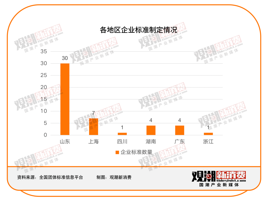 47条企业标准中,共有30条来自山东,其他来自上海、四川、湖南、广东和浙江。