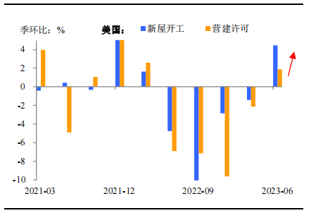 新房销售大增,美国地产公司业绩开始释放。二季度,全美头部开发商DR Horton,营收同比增长11%,成交房屋数量同比增长8%。而在供给端,地产公司竟然也开始罕见的在加息周期中,加大新房建设,二季度,美国营建许可与新屋开工数据都开始环比增长。