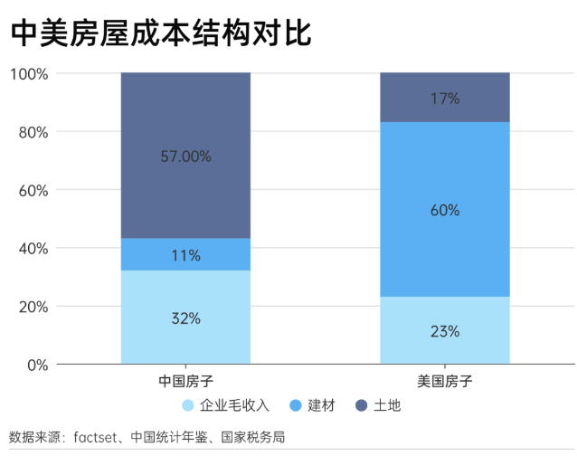 成本优势得益于规模效应,头部公司在采购设备和建材方面掌握着主动权。考虑到美国房屋成本中有60%的建材成本,远高于国内(11%),美国地产公司规模性采购建材的成本壁垒在当地形成的规模优势不可小觑。