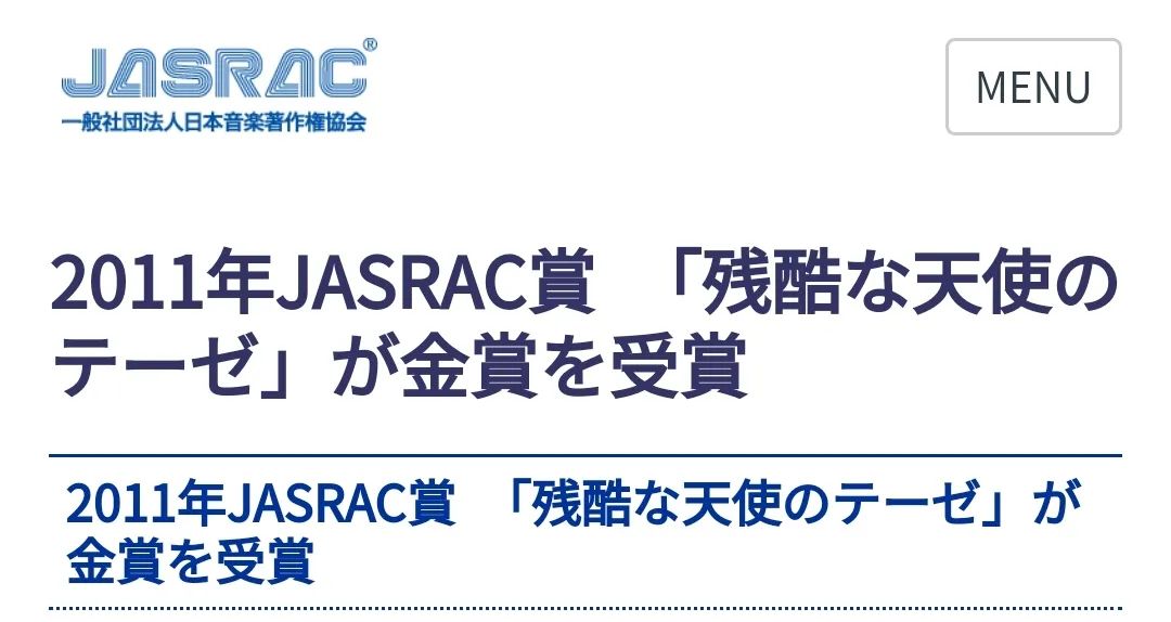 同时,不管是日本还是国内,动漫音乐也在长久不衰地走向成为可与主流音乐作品对等的经典作品。比如1995年高桥洋子所演唱发行的《新世纪福音战士》TV版主题曲《残酷天使行动纲领》,在此后的二十多年间一直热度不断历经翻唱与配信,也在2011年因经典永存的地位获得日本JASRAC赏第一名金奖。