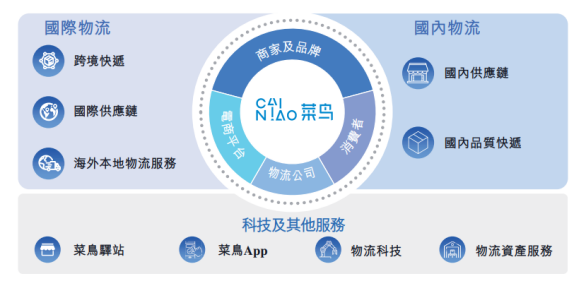 在国际物流方面,菜鸟还将为阿里巴巴集团各个电商平台上的商家提供服务,包括速卖通、天猫国际及天猫淘宝海外,并为阿里巴巴生态体系以外多个电商平台及在线渠道(例如快手)的商家提供服务。