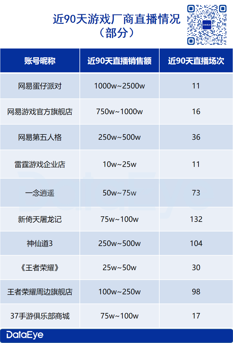 从目前的情况来看,游戏厂商直播带货呈现出“一超多强”的局面。