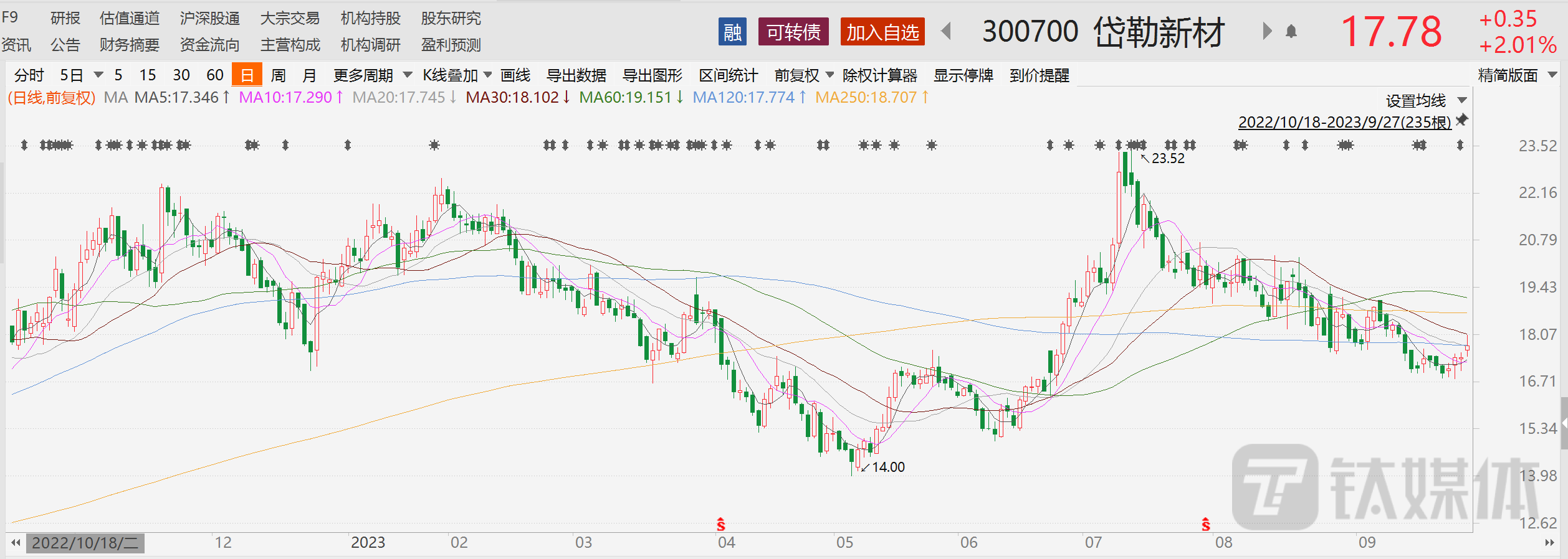 虽然上述消息属于利好,但二级市场股价却出现冲高回落的走势,显得信心不足。截至9月27日收盘,公司股价收报17.78元,上涨2.01%,总市值49.56亿元。