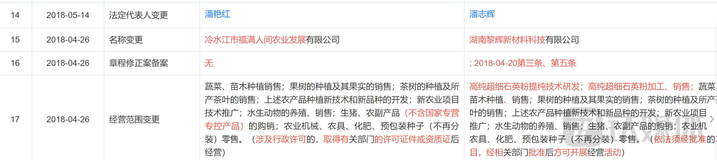 而黎辉新材曾用名为冷水江市福满人间农业发展有限公司(下称“福满人间”)。据悉,福满人间这家公司主营业务为农业相关,在2018年才改名为黎辉新材,并且更改经营范围为高纯超细石英砂相关业务,这也意味着黎辉新材做石英砂业务才五年。此外,虽然黎辉新材为高科技企业并已具备自主知识产权,但是截至目前为止,它仅仅取得6项实用新型专利,而发明专利只有1个。