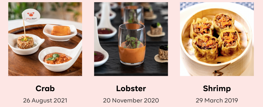 新加坡Shiok Meats成立于2018年,被认为是细胞培养海鲜领域最大的参与者之一。开发了细胞培养虾饺、龙虾肉、蟹肉。Shiok Meats于2021年8月26日在新加坡举行的私人活动中展示了世界上第一个细胞培养蟹肉。