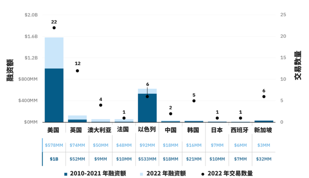 细胞培养肉及海鲜投资前10的国家(2016-2022 年) 图片来源:谷孚咨询