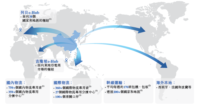 截至2023年6月30日,菜鸟管理着总建筑面积约为16.5百万平方米的1100多个仓库,其中有总建筑面积约3.5百万平方米的360多个国际物流专用仓及总建筑面积约13.0百万平方米的750多个国内物流专用仓。