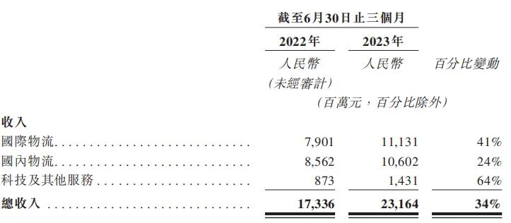 事实上,菜鸟的国际物流业务收入高于国内物流业务收入。招股书显示,截至2023年一季度末的财年,菜鸟的国际物流收入达到368.51亿元,占总收入比例47.4%。相较于2022财年,2023财年菜鸟的国际物流业务增速为41%,远高于国内物流业务的增速(24%)。