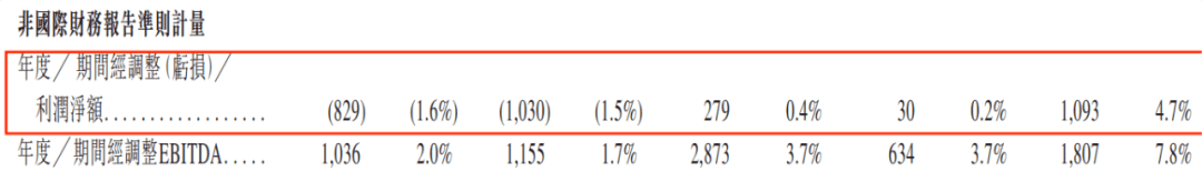 即便是剔除公允价值变动等一系列因素后,经调整净利润(非国际财务报告准则计量)仍存在亏损业绩。