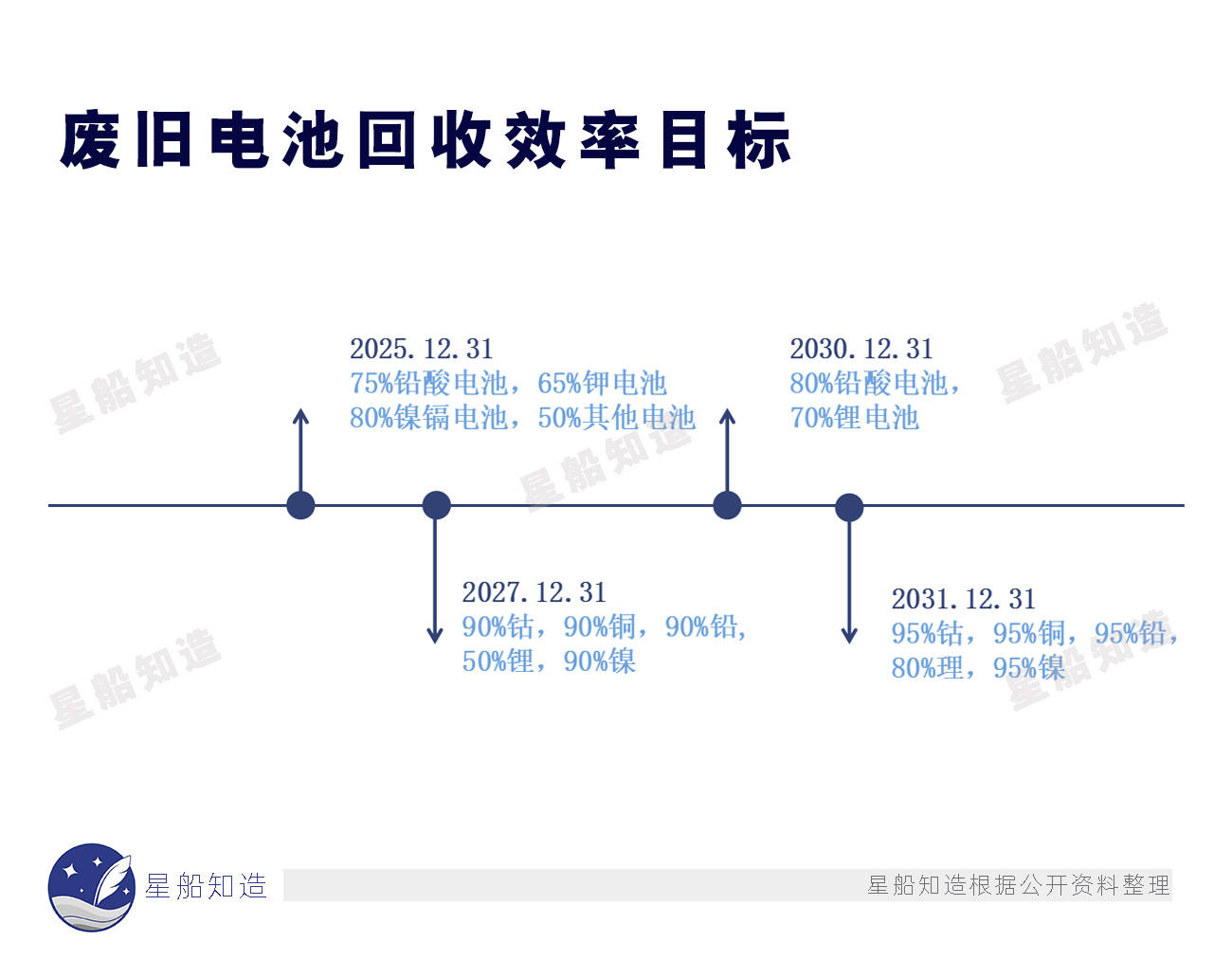 中国当前相关进展:欧盟在电池回收上制定的回收效率目标,与中国锂电回收行业大趋势大致相似。星船知造此前曾写过,国内动力锂电池的退役高峰将在2026年前后降到来,锂电回收产业也将迎来一轮爆发性增长。