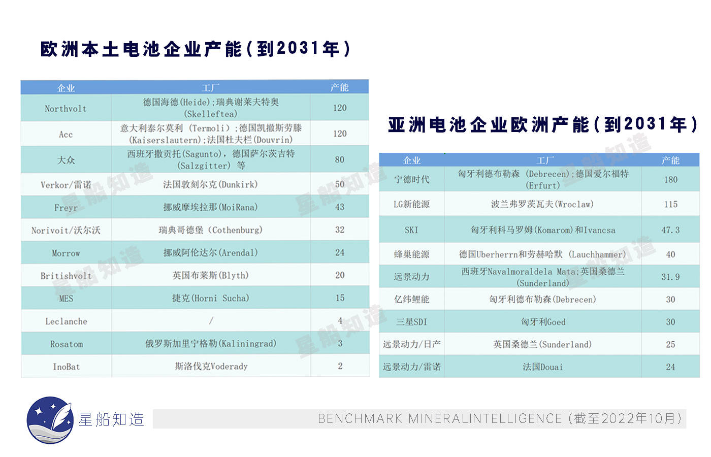 长远看——我们比对了一下根据公开信息披露的产能规划,从规划来看,亚洲锂电企业和欧洲本土企业在欧洲的产能布局总体差距并不明显,但欧洲企业的产能规划目前来看还是“空中楼阁”,《星船知造》分析主要有以下几个原因