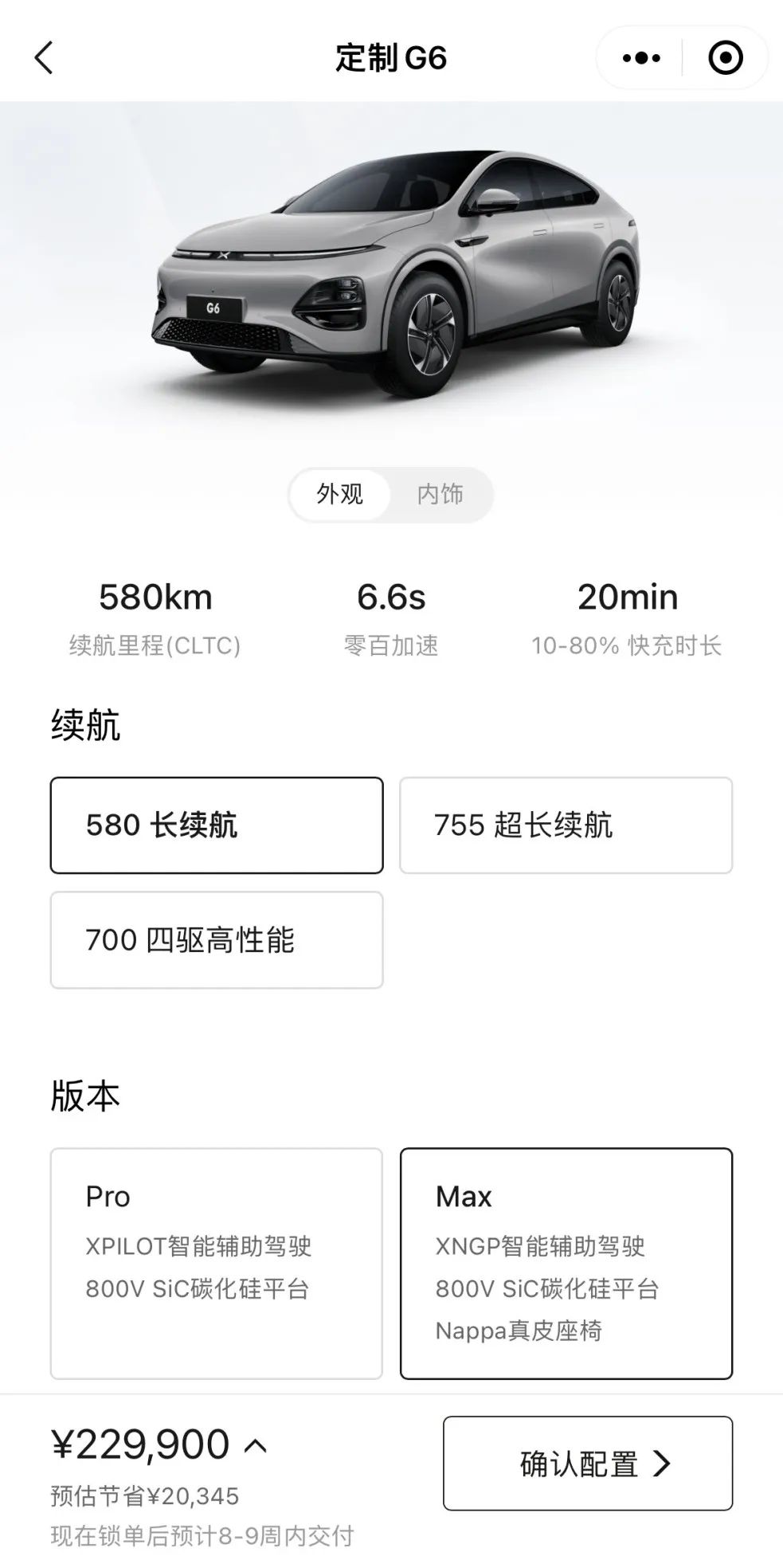 根据小鹏汽车APP的信息显示,G6 MAX版本需等待8-9周时间。据界面新闻报道,此前小鹏G9的日产量仅有30辆,明显低于预期。先前有大供给量的厂商不再信任小鹏,G6的生产只能寻求其他产能并没有饱和的厂商。