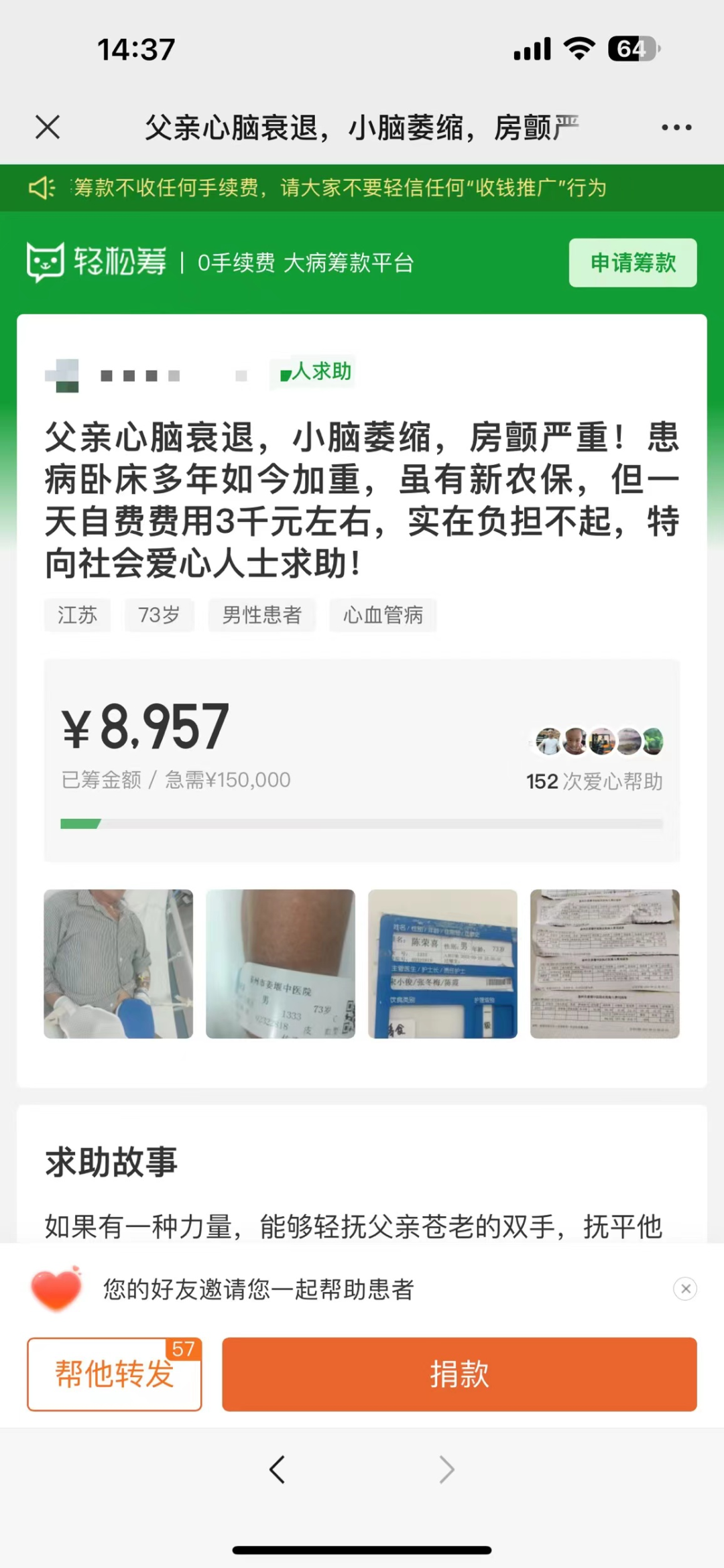 无独有偶,在本月23日我们看到一位自媒体老师因为自己的父亲发起了轻松筹的救助,而捐助的款项却只有8000余元,而他发起的金额达到150000元,他这个情况反应来看,似乎“爱心”平台筹款并没有那么高效。