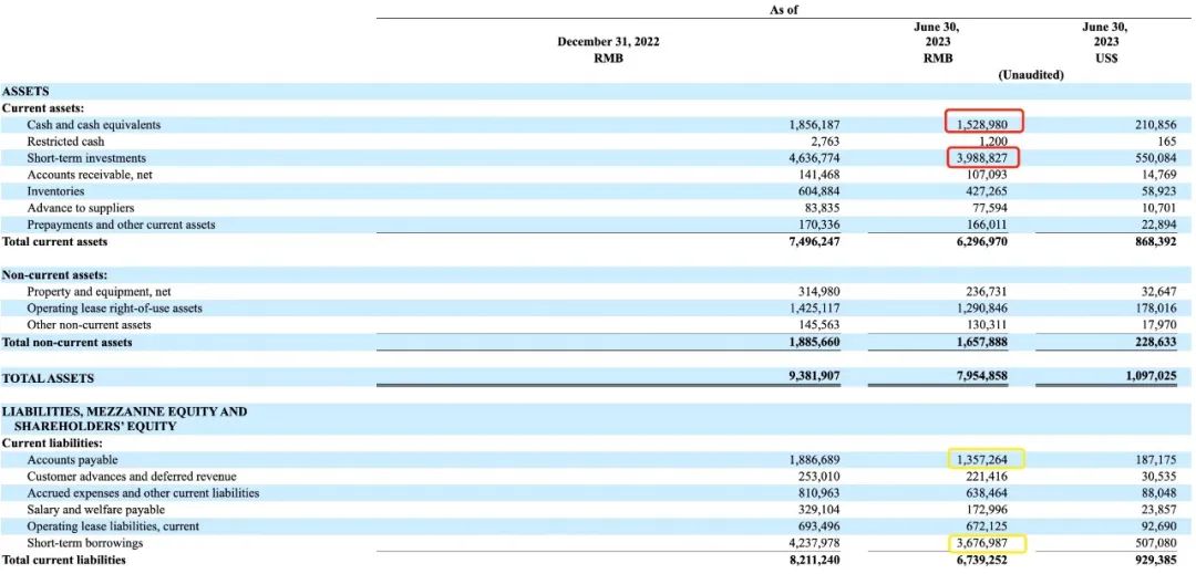再进一步讲,在财报显示的总变现金额中,实际现金其实只有15亿,剩下的反向保理金融计入短期投资科目占到近40亿。