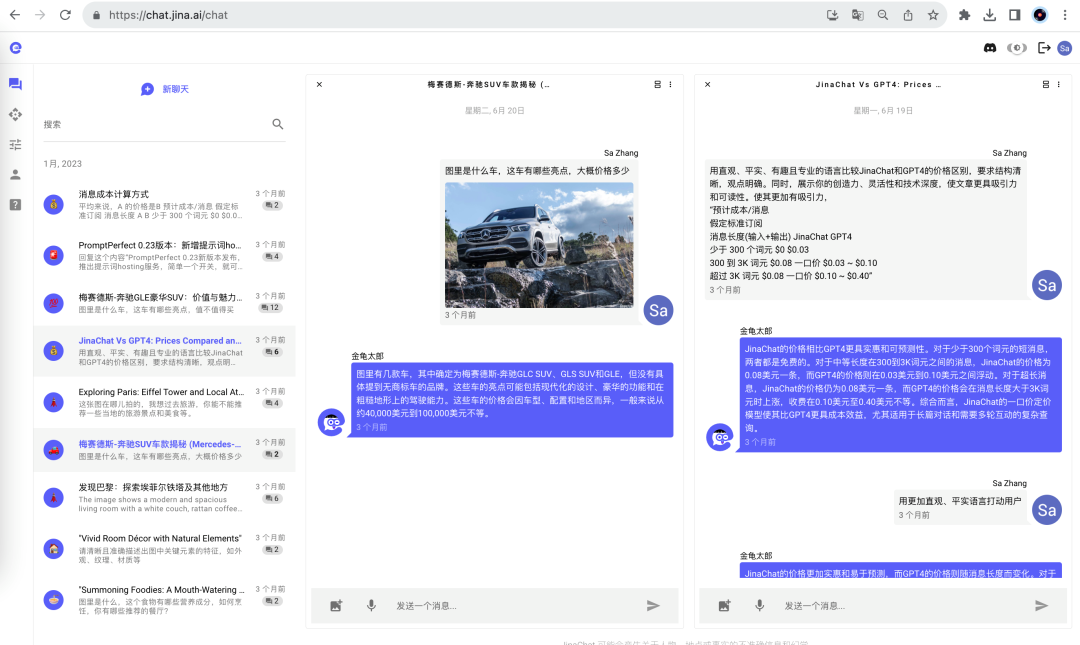 用户可以综合使用他们的工具箱,比如在 PromptPerfect 中优化的提示词再带到 SceneXplain 解释图片内容,或者用 SceneXplain 对图片信息进行抽取,再在 JinaChat 里生成进一步的信息扩充等等... 并且 Jina AI 目前已经打通了各个产品之间的账户和积分等信息。